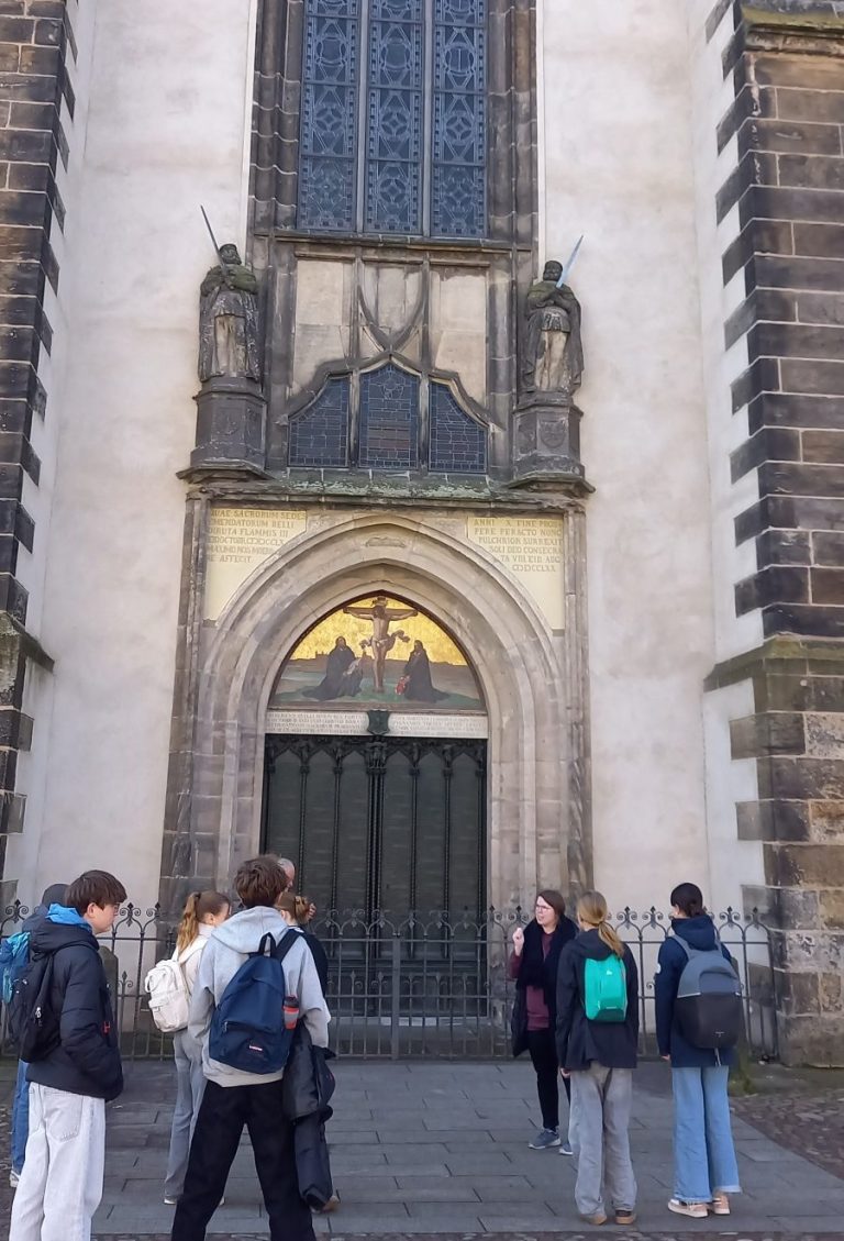 Am 07. März erkundeten unsere Konfirmanden Wittenberg auf den Spuren der Reformation.Von der Thesentür und dem Lutherhaus führte der Weg zur Stadtkirche, wo wir biblische Bilder und die schwierige Schmähplastik an der Fassade besprachen. Nach Zeit zur freien Erkundung in Kleingruppen versammelten wir uns für den Abschluss an der Elbwiese. In einer Andacht zu Psalm 1 verglichen wir Luthers Standhaftigkeit mit dem fließenden Wasser der Elbe.Wie ein Baum am Ufer brauchen wir beides: feste Wurzeln im Glauben und Offenheit für das Leben. Gestärkt blicken wir nun auf die kommende Konfirmation.