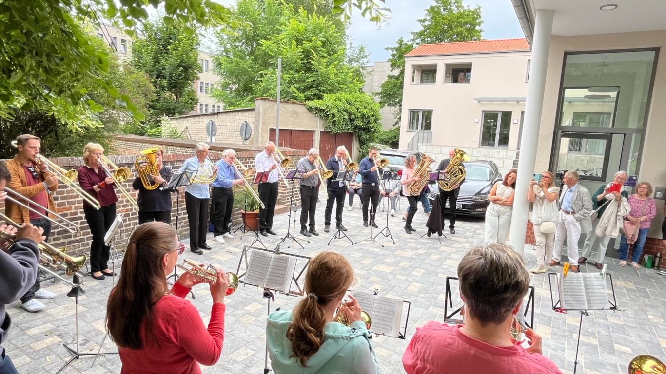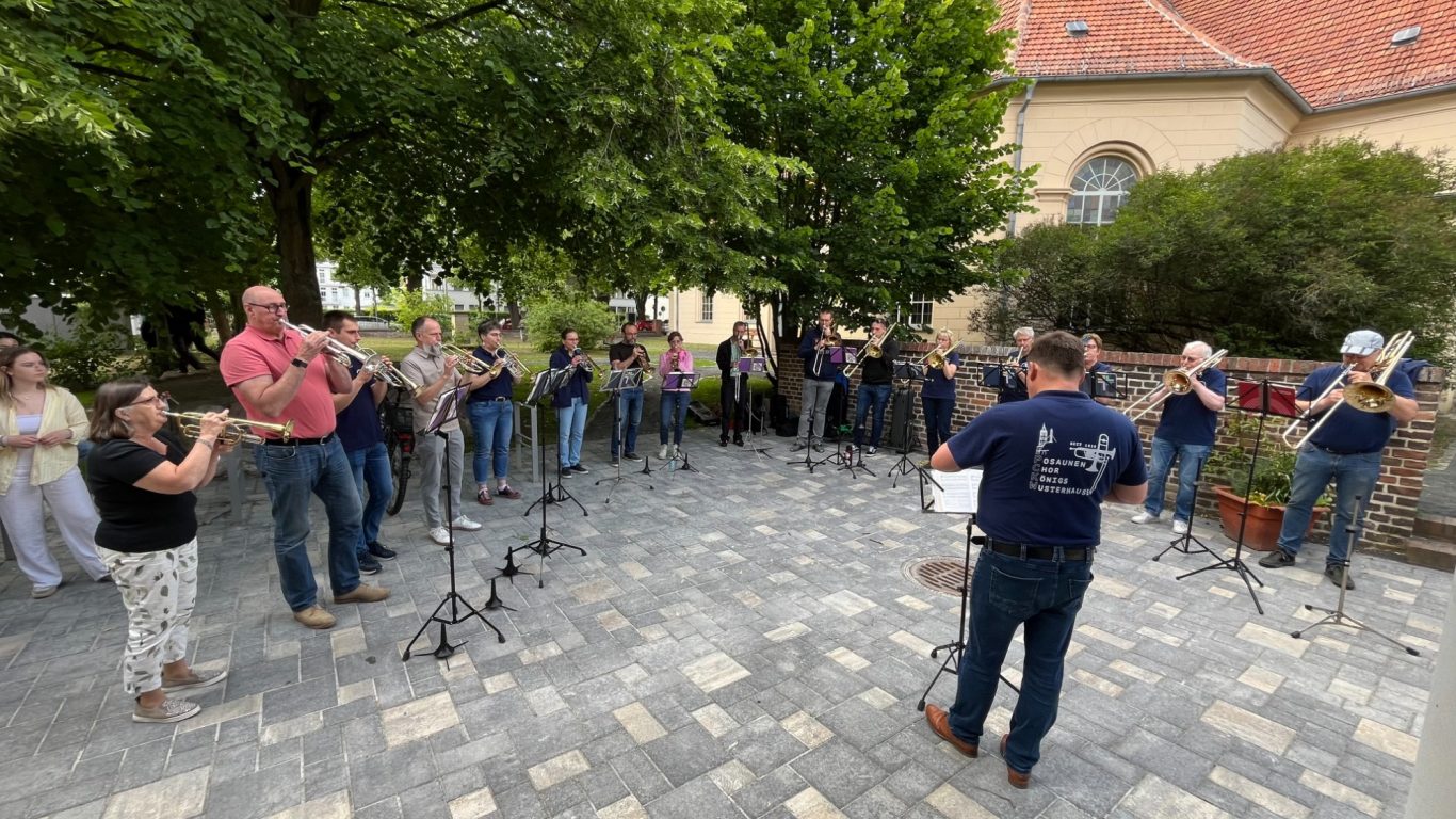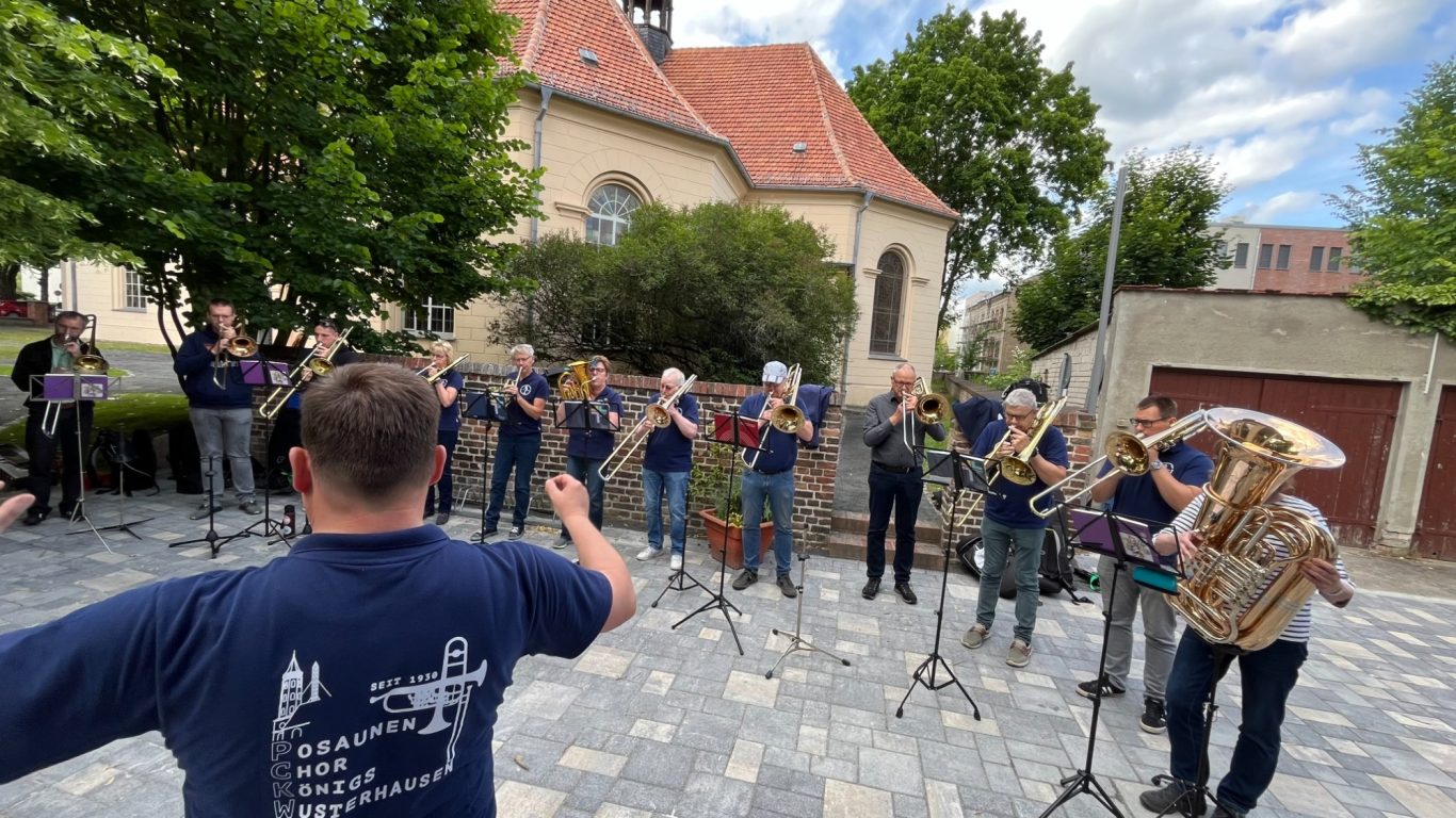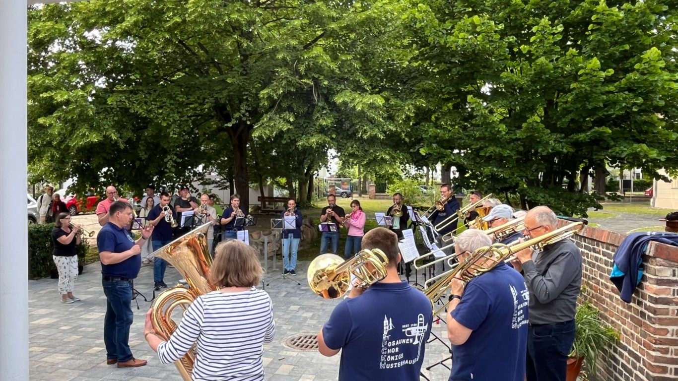 Mit großer Freude und der üblichen Verspätung bei Reisen mit Bus, Bahn und Auto durch die Republik erreichte die Entsendung des Posaunenchores Scheideweg am Nachmittag des Himmelfahrtstages das Ev. Gemeindezentrum an der Kreuzkirche. Nach herzlicher Begrüßung und einem kurzen Platzkonzert am Gemeindehaus wurden beim gemeinsamen Willkommenskaffeetrinken der Posaunenchöre, Feuerwehren und der Stadtverwaltungen Freundschaften gepflegt und auch gleich neu geknüpft. Neben dem festlichen Höhepunkt mit der feierlichen Unterzeichnung der Partnerschaftsurkunden durch Dietmar Persian, Bürgermeister von Hückeswagen, und Michaela Wiezorek, Bürgermeisterin von Königs Wusterhausen, gab es ein buntes Programm mit Stadtrundfahrt, Ausflug in den Spreewald, Austausch bei der Feuerwehr und natürlich Raum für gemeinsame Proben. Der geistliche Höhepunkt war unstrittig der musikalische Festgottesdienst am Sonntag Exaudi in der Kreuzkirche. Nach einem sehr ereignisreichen Wochenende verließen uns unsere Freunde in Richtung Hückeswagen in der Vorfreude auf ein baldiges Wiedersehen – hoffentlich im September 2025 in Hückeswagen.