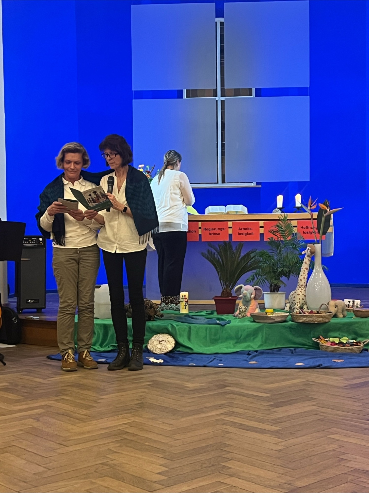 Dieser Gottesdienst war sehr ansprechend gestaltet, für alle Sinne war etwas dabei. Wir erfuhren einiges über das Land Nigeria, über das Leben der Schwachen in der Gesellschaft, zu denen oft Frauen und Kinder zählen. Deren äußere und innere Lasten und wie sich viele Frauen an ihrem Glauben an Christus festhalten und daraus Kraft schöpfen, dies erzählten kurze Anspiele während des Gottesdienstes. Erstmalig haben Kinder der Christenlehre ein Anspiel gestaltet.