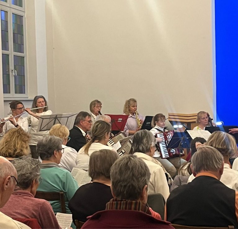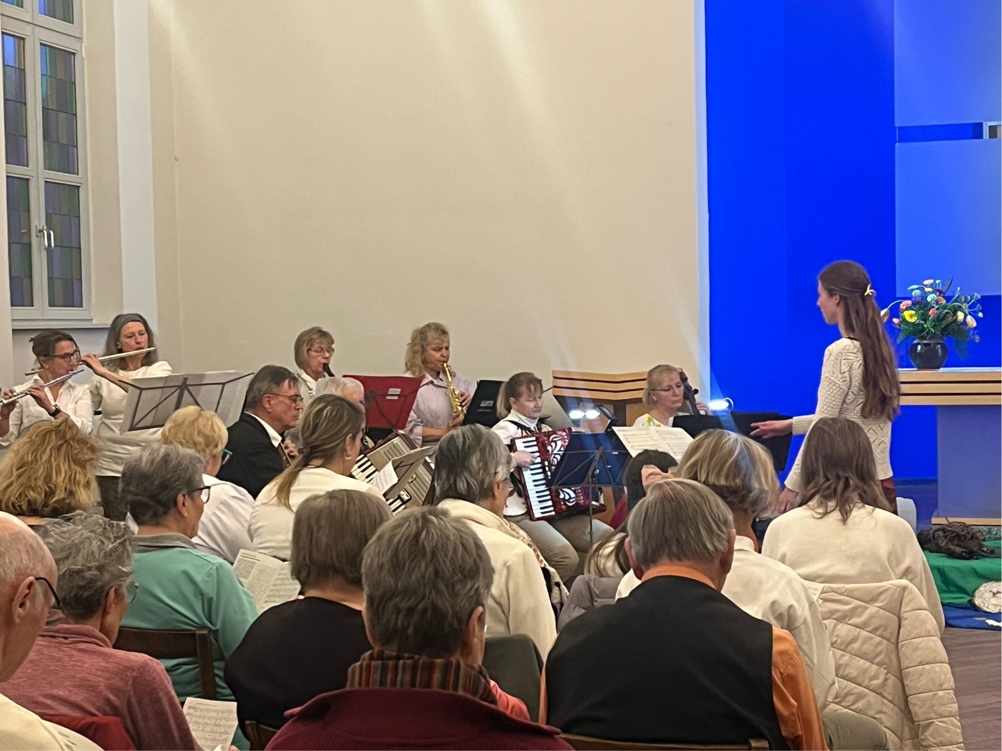 Durch die Instrumentalgruppe der Lukasgemeinde und Perkussionsinstrumente, welche kleine und große Gottesdienstbesucherinnen mit betätigen konnten, wurden die Lieder begleitet und brachten einen etwas anderen Rhythmus ins Gemeindehaus.